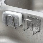Dos ganchos para colgar o sujetar esponjas, paños y otras herramientas domésticas.