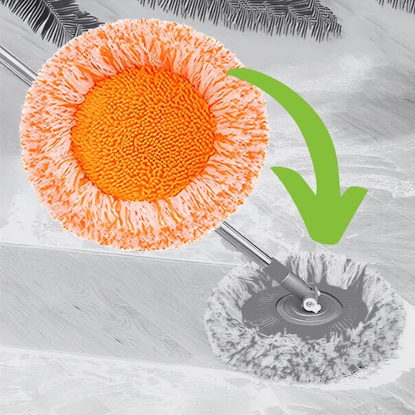 - El cabezal redondo de esta mopa de limpieza permite una limpieza de 360 grados.