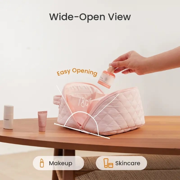 Diseñada para mujeres que aman la belleza y la comodidad, esta bolsa cosmética acolchada guarda fácilmente todos tus productos diarios de maquillaje y cuidado de la piel, manteniendo su forma y estructura.