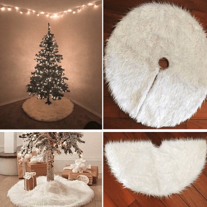 Fabricada con suave y una preciosas piel ecológica, la falda para el árbol de Navidad está diseñada específicamente para evocar la apariencia de un suelo cubierto de nieve, proporcionando una base encantadora para colocar tus regalos.