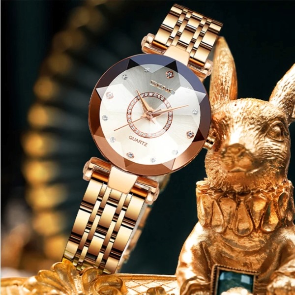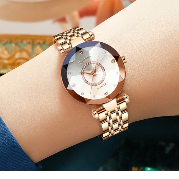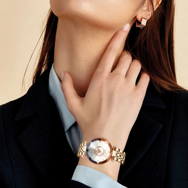 Movimiento de cuarzo de precisión: gracias a una unidad electrónica y un movimiento de cuarzo, SPARKLELIGHT garantiza no sólo un cronometraje preciso, sino una elegante sincronización de estilo y función. Cada mirada a tu muñeca se convierte en un momento de lujo refinado.