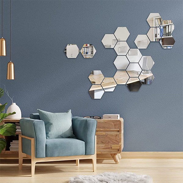 Los adhesivos hexagonales efecto espejo son un complemento decorativo que mejorarán al instante el aspecto de tu hogar. Son una forma asequible y elegante de decorar tus paredes.