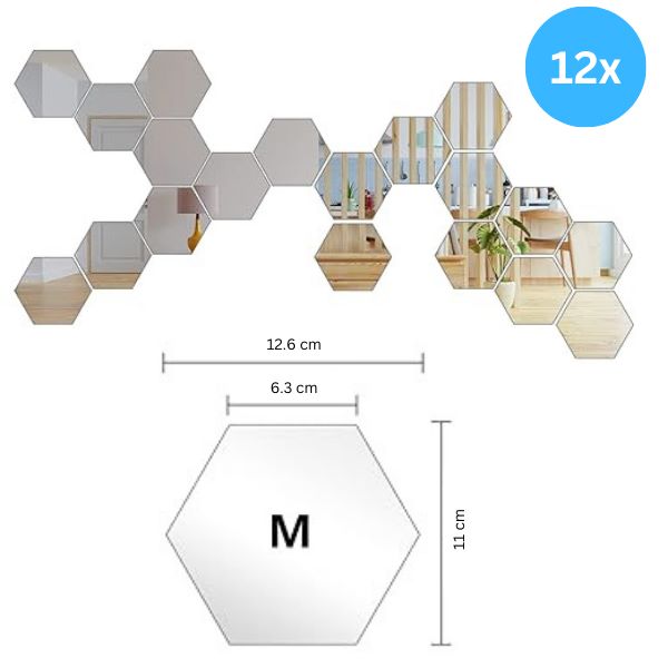 Adhesivos hexagonales con efecto espejo para paredes (12 piezas) | HEXAGEM