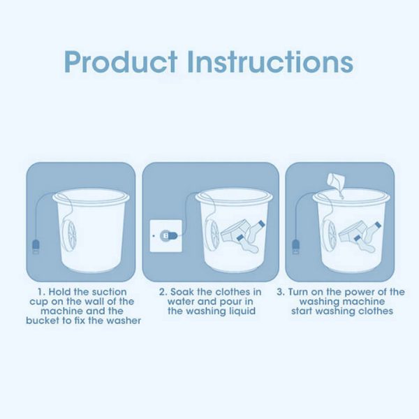 El uso de la lavadora portátil es extremadamente cómodo: basta con fijar el dispositivo a la pared o al fondo de un cubo, barreño, fregadero o superficie similar, verter el agua, añadir la ropa y enchufar la lavadora TURBOWASH a una fuente de alimentación. Es un método rápido y eficaz para lavar la ropa.